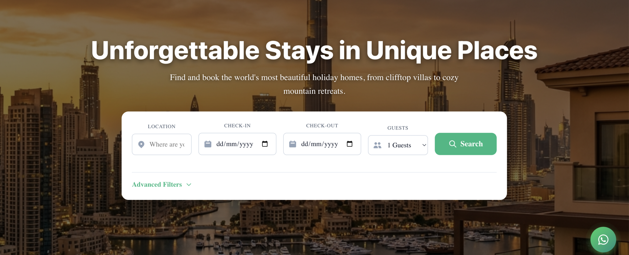 – Property types: Apartment, Villa, House, Studio, Penthouse, Cottage, Loft, Townhouse, Condo, Bungalow
