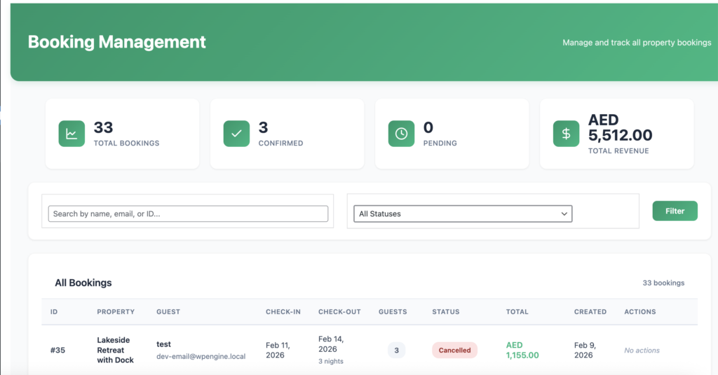 The Property Manager is your central hub for managing all vacation rental properties. Add unlimited properties with complete details including photos, amenities, location, pricing, and availability.